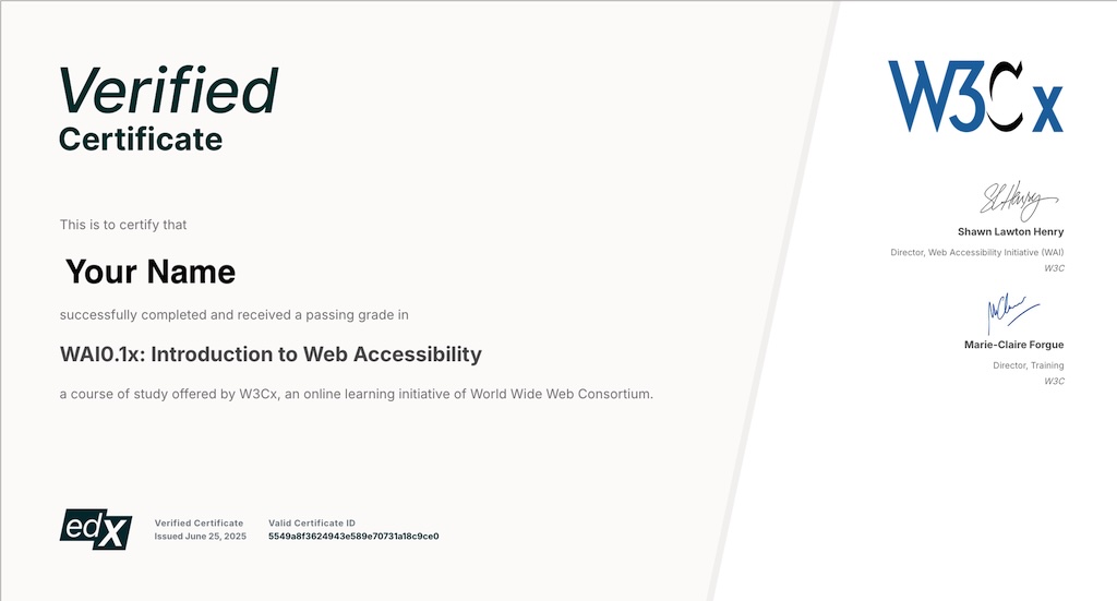 (For information about edX certificate verification and accessibility, see: edX Help Center Accessibility pages.)